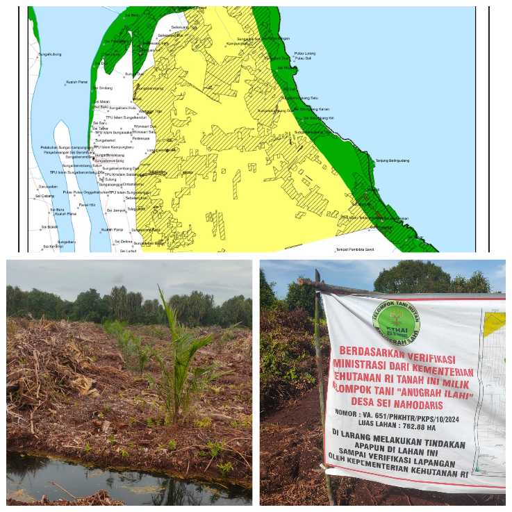 Pantauan sumber pada November 2024 menunjukkan area hutan lindung tersebut telah ditanami kelapa sawit muda dan diolah menggunakan alat berat seperti beko. Pada lokasi juga ditemukan plang bertuliskan Kelompok Tani Anugrah Ilahi.